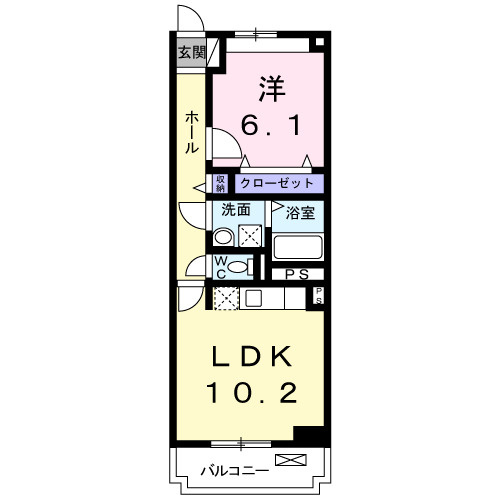 お部屋は振り分けタイプで、寝室は住宅街側ですので騒音の心配もございません。