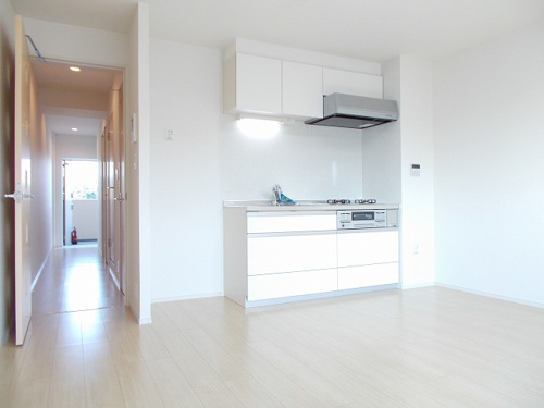 築浅の1LDKマンションで3口ガスコンロ付システムキッチンは料理をされる方に人気です。