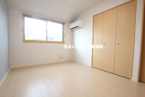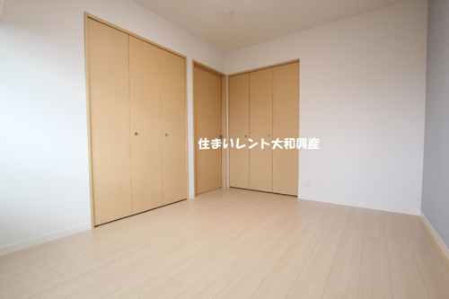 もう一方の洋室は、グレーのクロスがポイントです。クローゼットが2か所あり、収納が豊富です。
