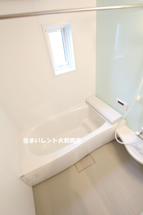 広い浴室は、追焚機能と浴室乾燥機つき。