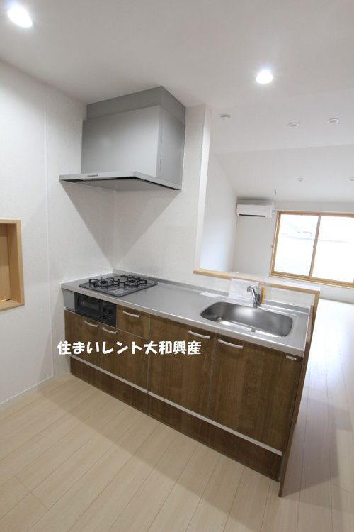 対面キッチン。リビングの様子を見ながら家事ができます。お子様連れのファミリーに、とくにおススメです。